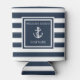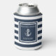 Navy Blue Striped Nautical Anchor Boat Name Can Cooler