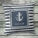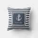 Navy Blue Striped Nautical Anchor Boat Name Cushion