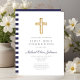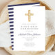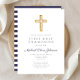 Personalised Navy Blue Stripes Boy First Communion Invitation. Part of the Religious Cross Navy Blue Boy First Communion Collection Suite with matching stationery and first communion party accessories.