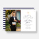 Personalised Navy Blue Stripes Boy First Communion Photo Invitation. Part of the Religious Cross Navy Blue Boy First Communion Collection Suite with matching stationery and first communion party accessories.
