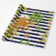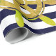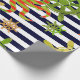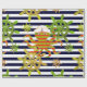 Seamless and repeating nautical themed pattern with octopus and ships helm wheel on navy blue stripped background.