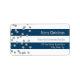 Christmas address labels with navy blue and white stripes pattern and festive silver confetti.