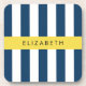 Navy Blue Stripes, Striped Pattern, Your Name Coaster