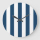 Navy Blue Stripes, White Stripes, Striped Pattern Large Clock