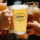 Beer glass for the wedding groomsman that features his name printed in a trendy, navy blue, stylised script inside a navy blue colour oval border along with wedding year date. A great party supply idea for a bachelor party! Personalise your beer glass by editing and replacing name and date with your own. Available in many, popular wedding colour schemes.
