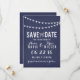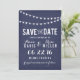 Having a rustic wedding or love the retro style? Customise your very own navy blue chalkboard summer string light "Save the Date". Personalise your "Save the Date" by changing the font style, colour, and more by clicking on the "Customise It" button below the product image.