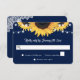 Rustic navy blue and sunflower wedding RSVP card featuring sunflower flowers, string lights, burlap hearts and delicate floral lace. Perfect card design to complement your navy blue rustic wedding party inspired by sunflowers. Matching items available.