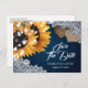 These rustic burlap and lace sunflower wedding save the date postcards are ideal for your navy blue rustic wedding party inspired by sunflower flowers. Matching items available.
