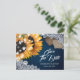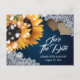 Navy Blue Sunflower Wedding Save The Date Postcard