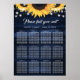 Complement your navy blue rustic wedding party inspired by sunflowers with this elegant seating chart for 12 tables. Matching items available.