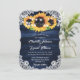 Rustic navy blue and sunflower wedding invitation ideal for a navy blue rustic wedding party inspired by sunflower flowers. Matching items available.