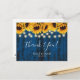 Navy Blue Sunflowers Rustic Wedding Thank You Postcard