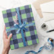Navy Blue Teal Classic Gingham Check Plaid Wrapping Paper