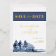 This Save The Date Card features a beautiful watercolor blue trees and mountain scenery, with modern calligraphy typography in REAL GOLD FOIL. Check out our Wedding collections to find the perfect matching items to make your special day even more special, and impress your guests with this beautiful design.