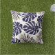 Navy blue tropical monstera leaves pattern cushion