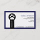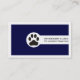 Navy blue Vet/Veterinary Clinic, paw minimalist business cards that features a black paw on a white circle. Navy blue background with white borders. A great, feminine design for veterinarians or pet clinic/hospital services.