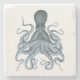 Navy Blue Vintage Octopus Illustration Stone Coaster