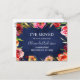 Navy Blue Watercolor Floral Moving Announcement Postcard