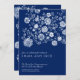 Set a romantic tone with this navy blue wedding invitation, featuring a lush watercolor style floral pattern in soft white and blue shades cascading across the design. Refined script and serif typography highlight your names, date, and venue details, creating a formal yet modern look ideal for evening, ballroom, or elegant garden celebrations. Coordinating with matching blue floral pieces, this invitation brings a cohesive "something blue" touch to your entire stationery suite.