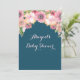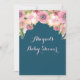 Personalised baby shower invitations in navy blue and pretty pink watercolor vintage flowers. Perfect for a spring or summer baby shower.