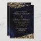 Navy Blue Watercolor & Gold Wedding Invitation