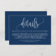 Let your guests know about your wedding details with this customisable wedding details card. It features bold calligraphy and simple serif typography on navy blue background. Personalise this modern wedding details card by adding your wedding details. This minimalist details card is perfect for any wedding season or theme.