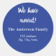 Navy blue we have moved new address classic round sticker
