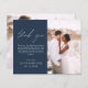 Budget Wedding Thank You Cards that have a photo on the front and back. The Thank you cards contain a modern hand lettered cursive script typography that are elegant, simple and modern to use after you wedding day celebration.