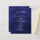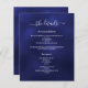 A modern, elegant wedding program/details/timeline. A navy blue coloured background. The blue colour is uneven. Personalise and add your names and wedding details. White coloured letters.