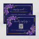 Elegant navy blue wedding RSVP card featuring purple violet florals and a refined gold frame. Designed with a traditional mail response layout, including guest count and meal selection options for a complete and functional experience. Ideal for formal, classic, and evening weddings. This design pairs beautifully with a full wedding stationery suite and reflects modern trends, including coordinated RSVP and wedding planning details.