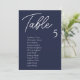 Modern Navy Blue Wedding Table Seating Chart Cards are the perfect finishing touch for your wedding reception. Guide your guests to their seats with this unique seating chart. The cards are perfect for hanging or displaying on a board or wall. The design features a minimal script font with elegant san serif in white on a navy blue background. The design is printed on both sides.