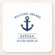 Navy Blue Welcome Aboard Custom Monogram Name Square Paper Coaster