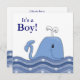 Adorable navy blue whale baby boy shower invitation with a cute blue wave background. The back side has the same blue waves with a nautical ship wheel. Add your details to the front and/or back by adding your event details, font style, font size & colour, and wording.