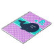 It's easy to personalise this colourful polka dots and navy blue whale notebook with a name before ordering! Features a purple polka dotted background with a navy blue whale with aqua blue water spout and an area you can easily customise with a name!