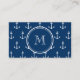 Navy Blue White Anchors Pattern, Your Monogram Business Card