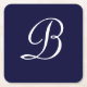 Navy Blue & White B Monogram script text Square Paper Coaster