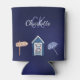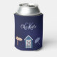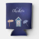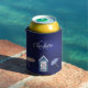Navy blue white beach pool monogram can cooler