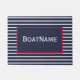 Perfectly chic, and simple navy blue and white with red detail doormat to be customised with your boat name for your boat or marina slip
