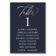 Navy Blue White Calligraphy Seating Chart Table Number