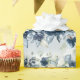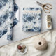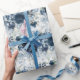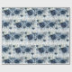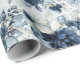 An elegant and sophisticated wedding wrapping paper featuring watercolor-painted peonies, florals and greenery in navy and dusty blue with a light blue watercolor wash background.