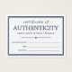 Elegant and minimalist certificate of authenticity in navy blue and white to which you can add your name or business name.