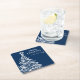 Navy Blue White Christmas Tree Party Square Paper Coaster