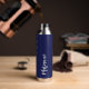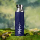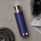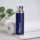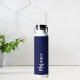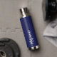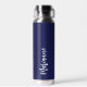 Navy blue white custom name script water bottle