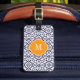Navy Blue & White Damask Monogram Luggage Tag