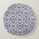 Stylish and cute two-toned Navy Blue & White Damask Round Pillow.