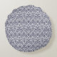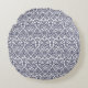 Stylish and cute two-toned Navy Blue & White Damask Round Pillow.