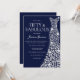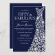 Navy Blue White Diamond Dress 50th Birthday Party Invitation
