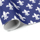 Navy Blue White Fleur de Lis Pattern Wrapping Paper