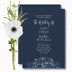 Navy Blue White Floral Minimal QR Code Wedding Invitation