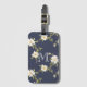 Navy Blue White Floral Monogram Luggage Tag